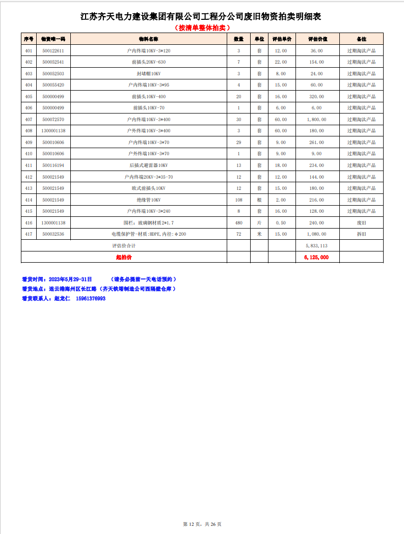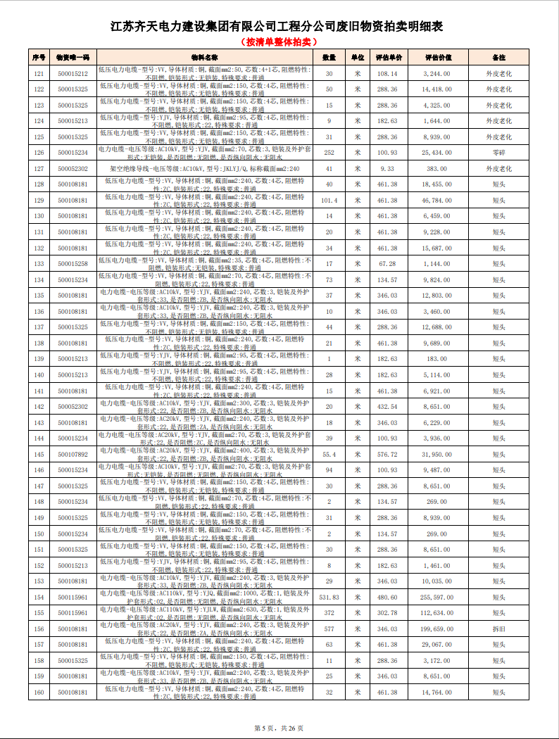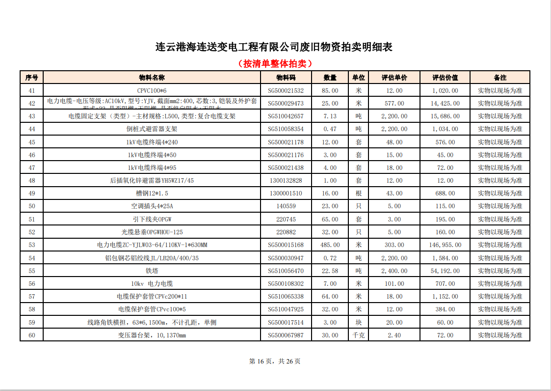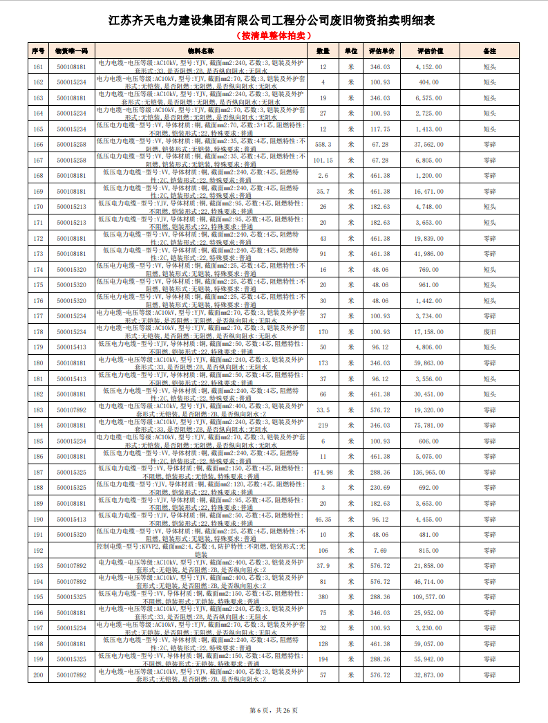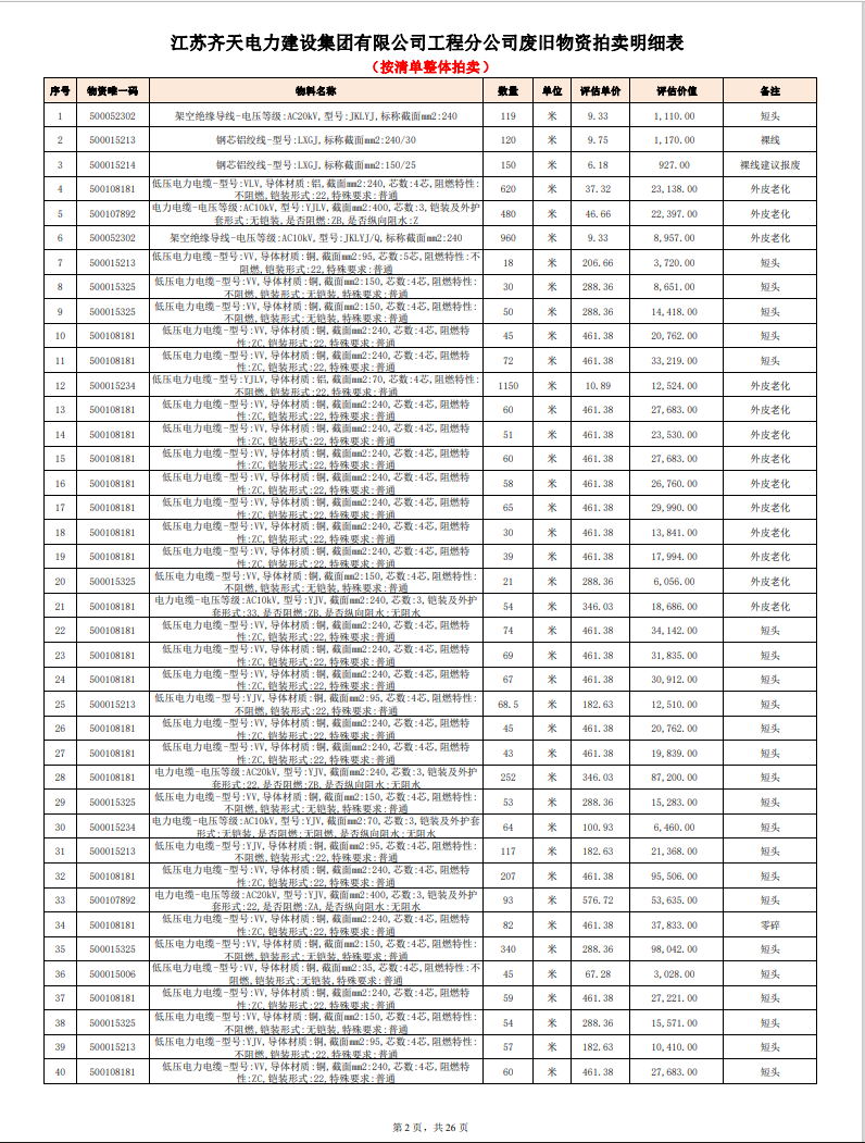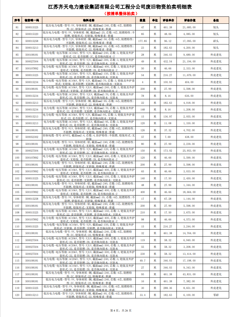 關(guān)注微信公眾號(hào)定于2023年6月1日上午9:30時(shí)(網(wǎng)絡(luò)延時(shí)除外)在中拍平臺(tái)公開拍賣廢舊電力物資一批。主要包含:銅芯電纜、鋁芯電纜、鋼芯鋁絞線、廢舊鋼材、變壓器、電力設(shè)備、辦公設(shè)備、雜項(xiàng)物資、蓄電池等。