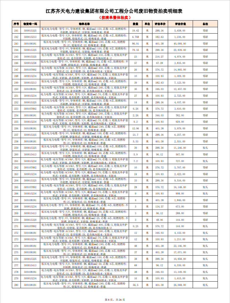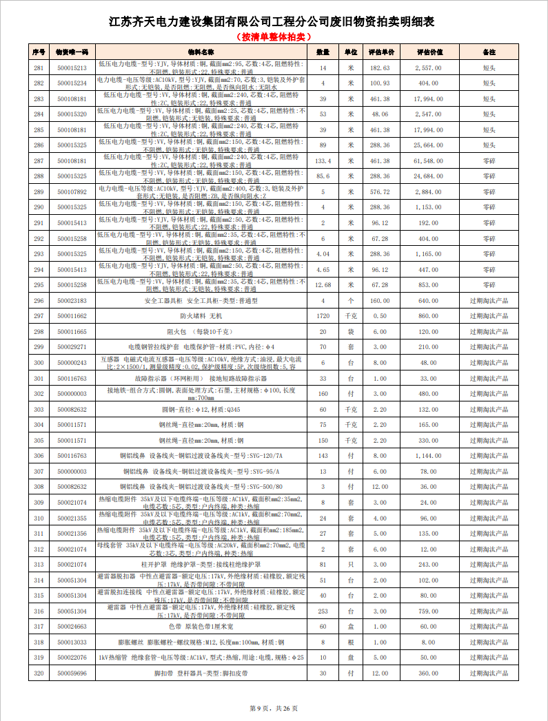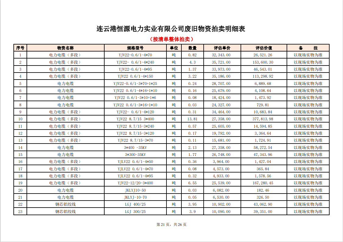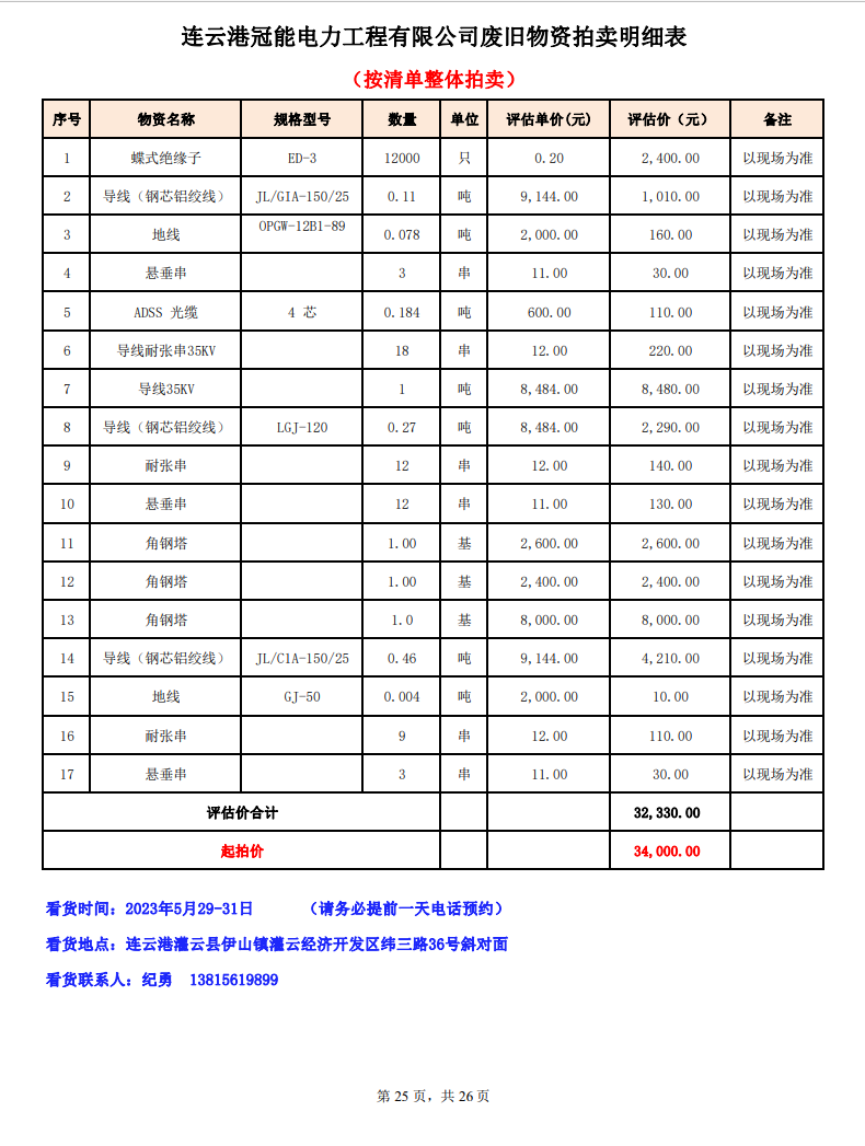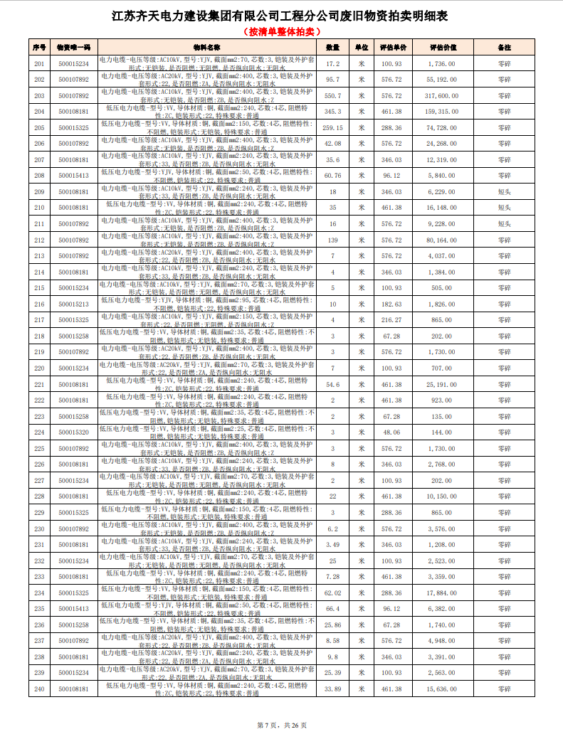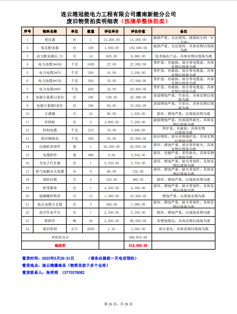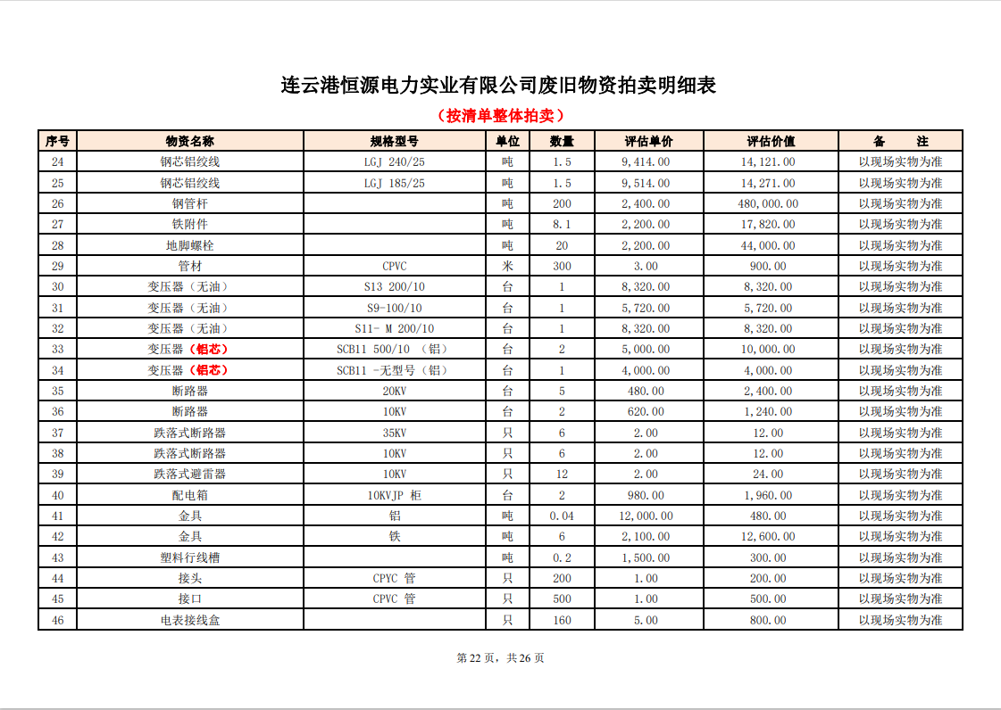 關(guān)注微信公眾號(hào)定于2023年6月1日上午9:30時(shí)(網(wǎng)絡(luò)延時(shí)除外)在中拍平臺(tái)公開拍賣廢舊電力物資一批。主要包含:銅芯電纜、鋁芯電纜、鋼芯鋁絞線、廢舊鋼材、變壓器、電力設(shè)備、辦公設(shè)備、雜項(xiàng)物資、蓄電池等。