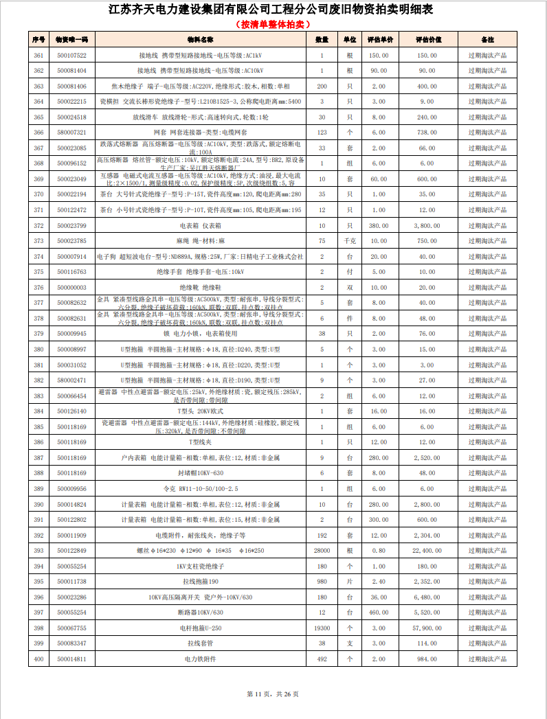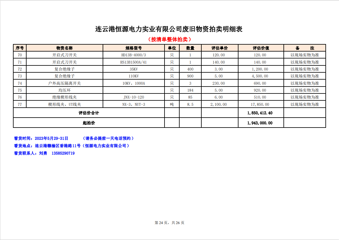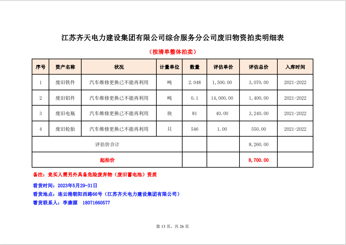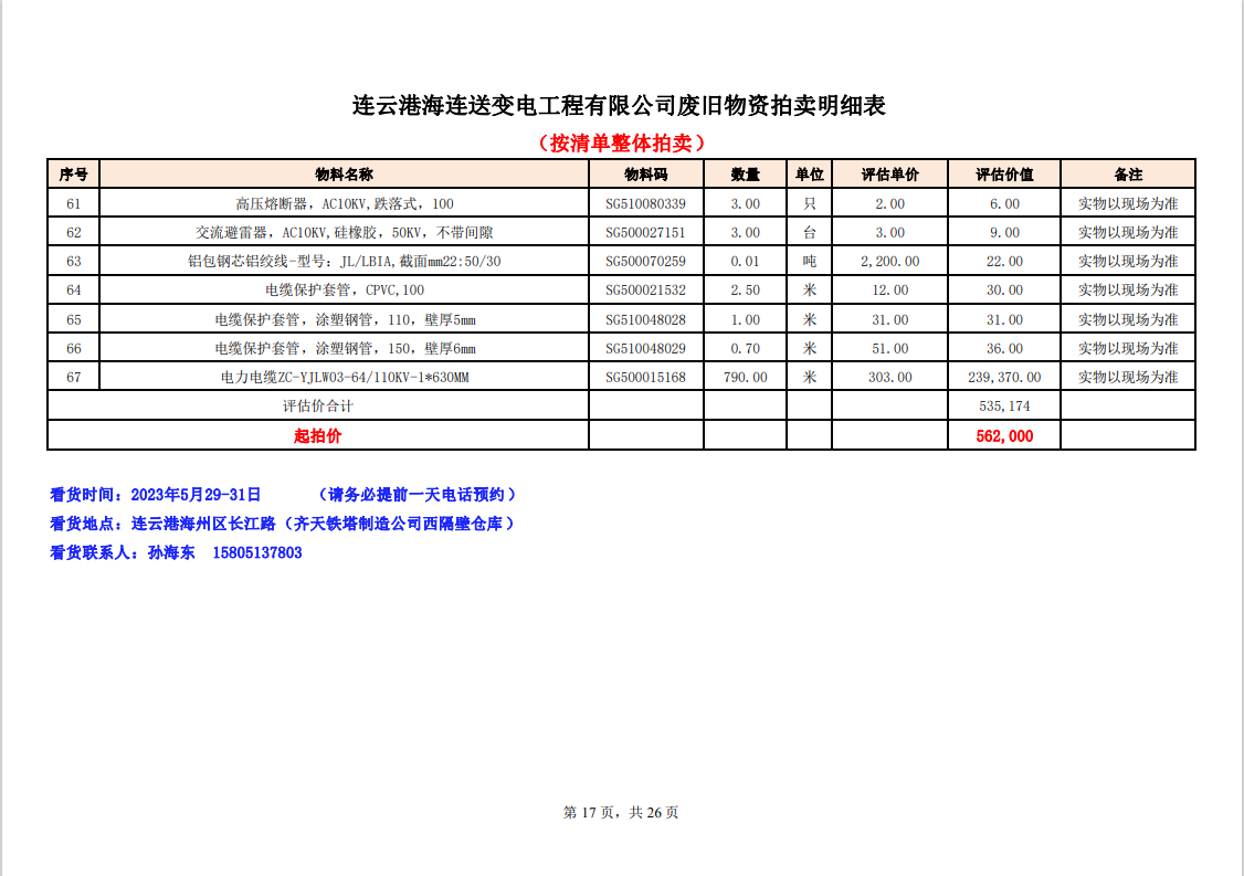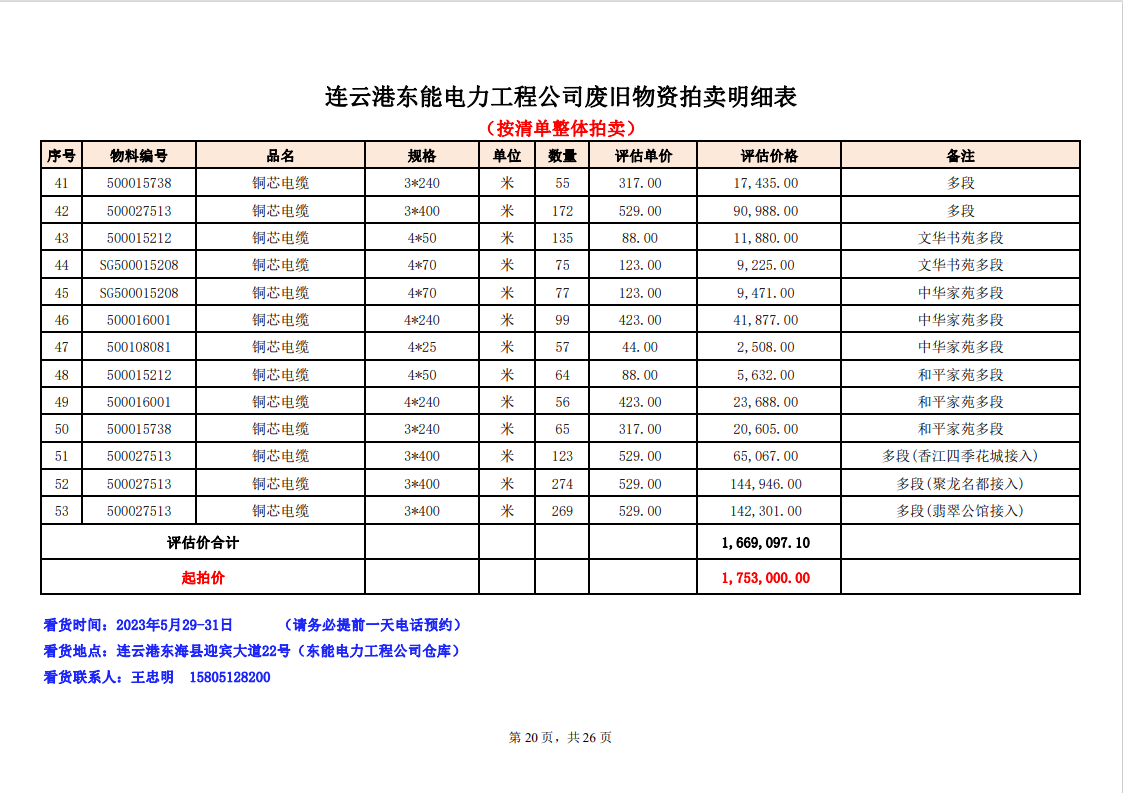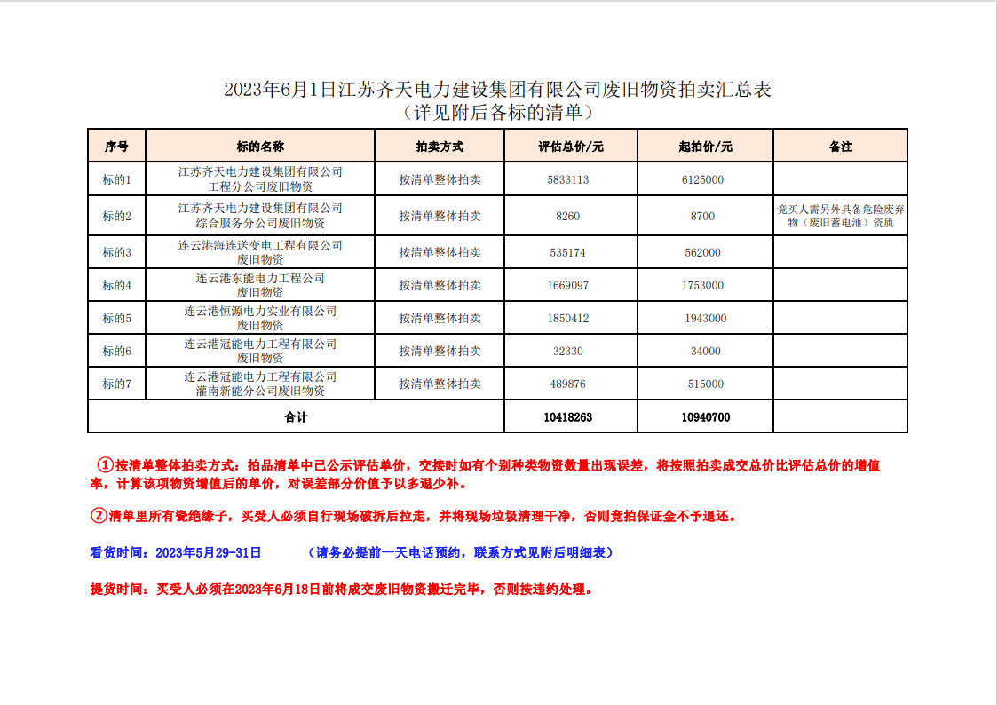 關(guān)注微信公眾號(hào)定于2023年6月1日上午9:30時(shí)(網(wǎng)絡(luò)延時(shí)除外)在中拍平臺(tái)公開拍賣廢舊電力物資一批。主要包含:銅芯電纜、鋁芯電纜、鋼芯鋁絞線、廢舊鋼材、變壓器、電力設(shè)備、辦公設(shè)備、雜項(xiàng)物資、蓄電池等。