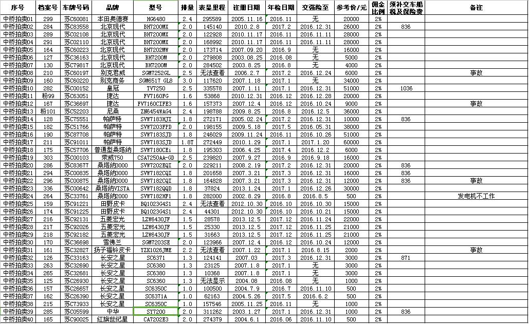 徐州市市級機(jī)關(guān)公車改革取消車輛聯(lián)合拍賣公告及拍品目錄