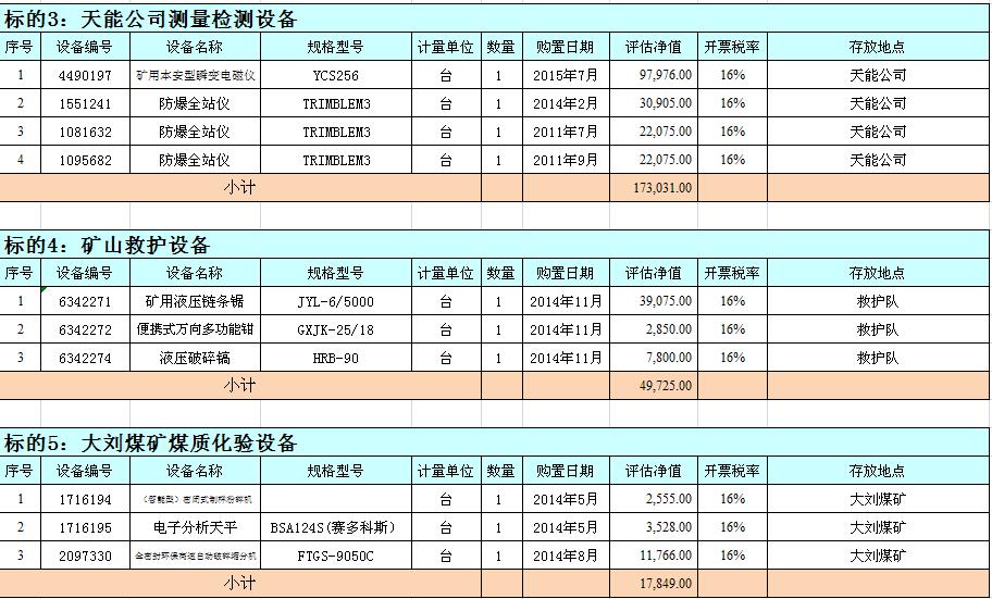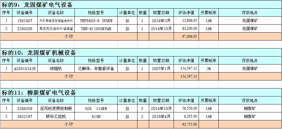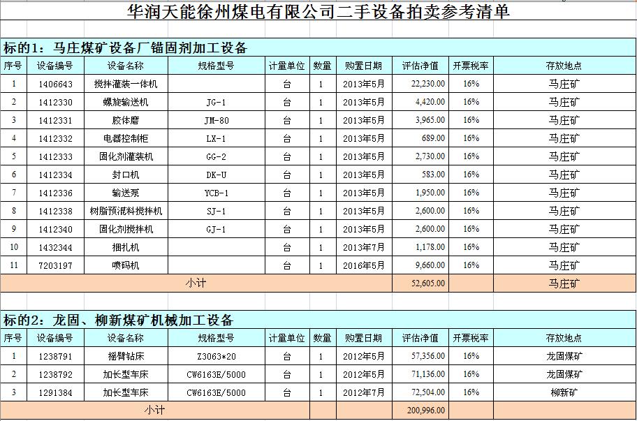 關注微信公眾號我公司受委托,定于2018年9月18日10時在徐州市中山南路55號副樓三樓本公司拍賣大廳公開拍賣:徐州市馬莊煤礦、大劉煤礦、龍固煤礦、沛城煤礦、柳新煤礦的二手設備一批。