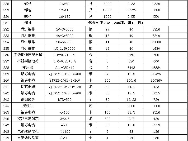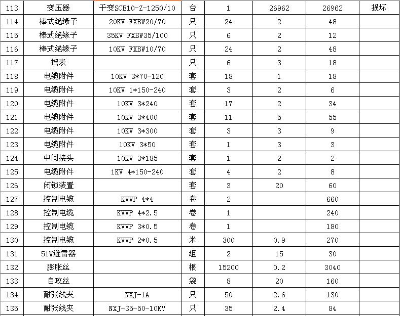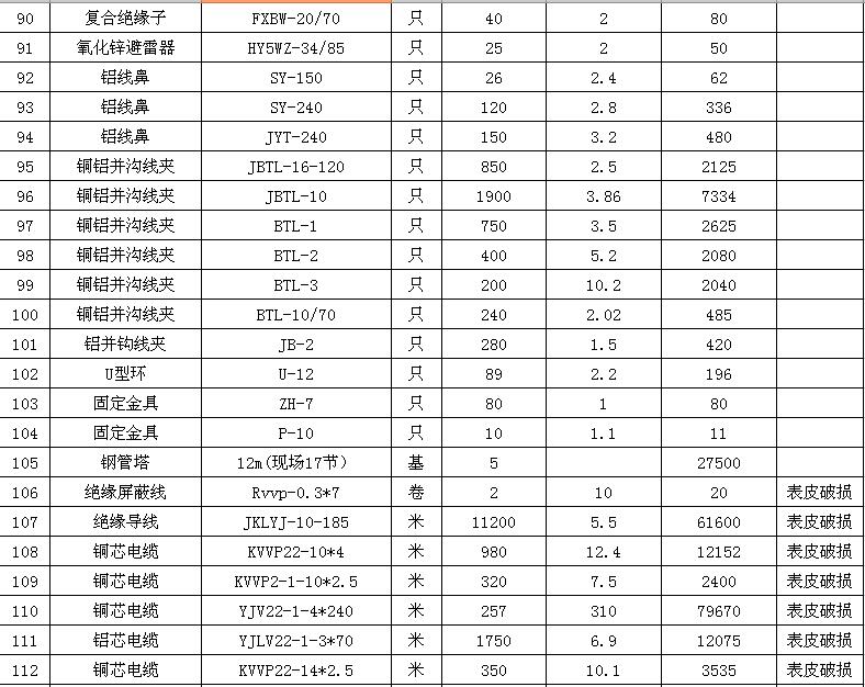 淮陰力源電力實業(yè)開發(fā)有限公司廢舊物資拍賣參考明細表