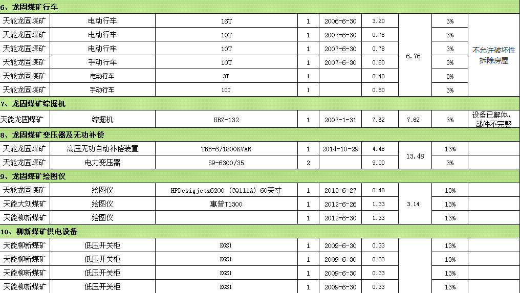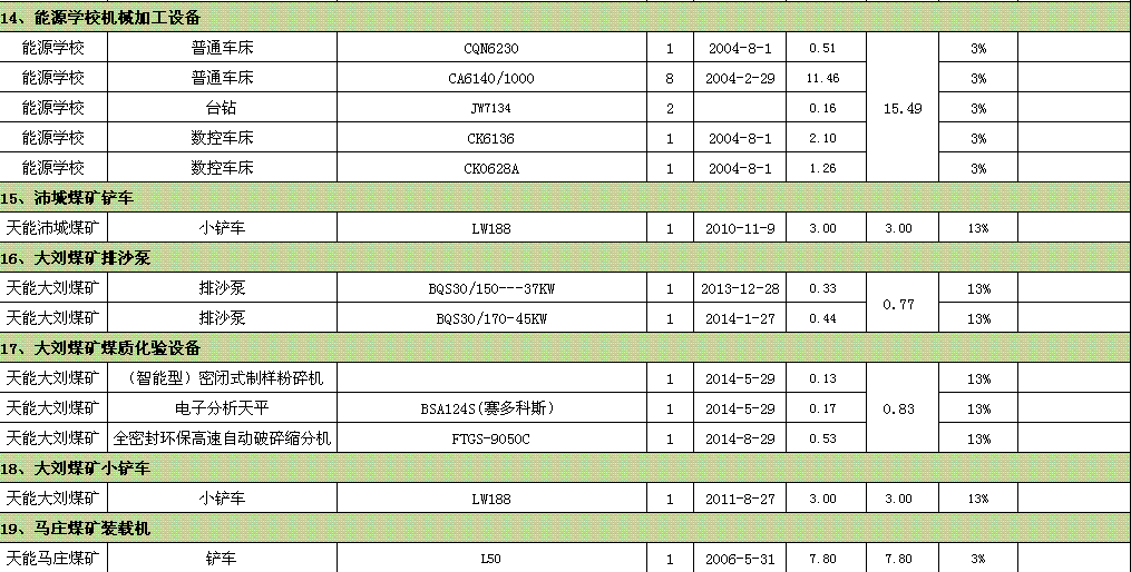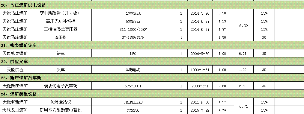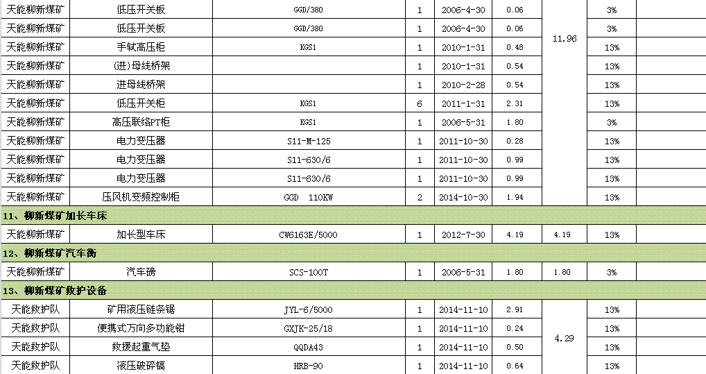 裝載機(jī)、鉆床、車床、提升機(jī)、壓風(fēng)機(jī)、行車、綜掘機(jī)、變壓器、開(kāi)關(guān)柜、鏟車汽車衡、測(cè)量設(shè)備等。