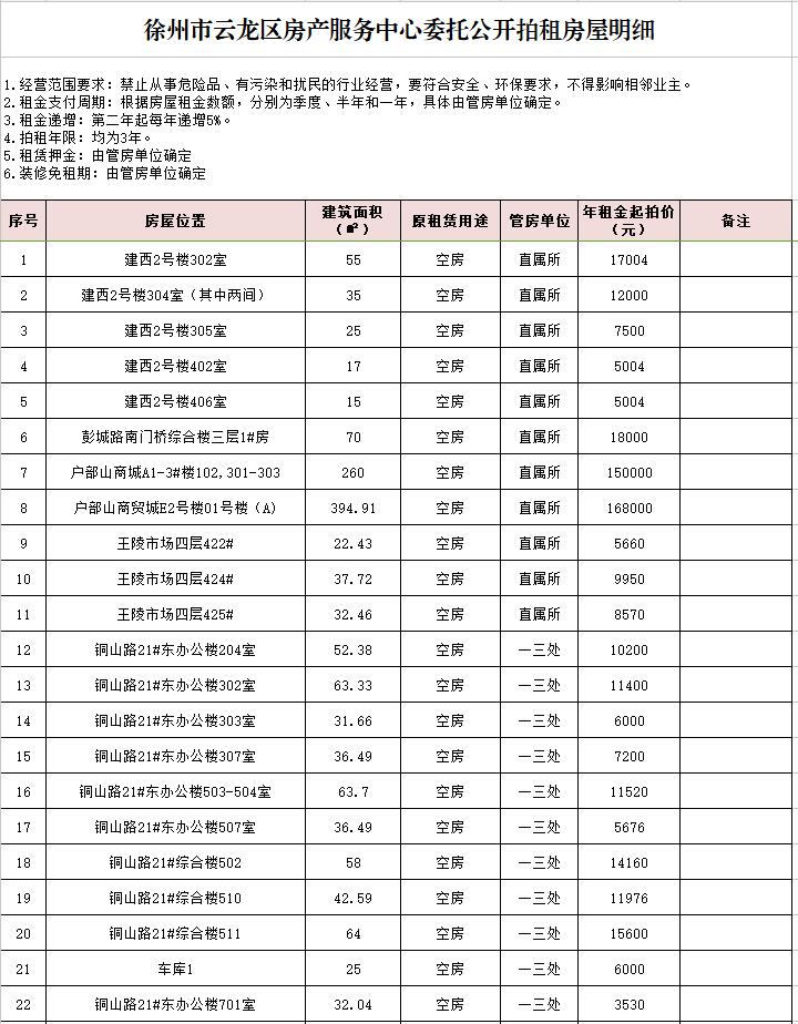 關(guān)注微信公眾號(hào)我公司受委托,定于2020年12月18日10時(shí)在中山南路55號(hào)本公司拍賣廳對(duì)云龍區(qū)公有房屋50余處進(jìn)行公開(kāi)拍租: